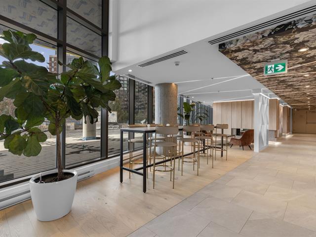 Le Wellington sur le Bassin se distingue par ses espaces communs exceptionnels situés au 25e étage, offrant une vue imprenable sur le Canal Lachine et le centre-ville. Les résidents ont accès à une piscine extérieure sur le toit, à plusieurs espaces lounge idéaux pour le télétravail ou les rencontres entre amis, ainsi qu'à un gym entièrement équipé. Une terrasse commune au rez-de-chaussée et un service de sécurité à l'entrée viennent compléter ces installations haut de gamme.
