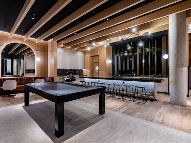 L'immeuble comprend plusieurs espaces communs : - Terrasses au sommet de la tour - Piscine extérieure et zones de détente sur le toit - Spa extérieur - Salle d'entraînement - Sauna sec - Spa intérieur - Piscines tempérées - Chalet urbain - Centre d'affaires avec salles de réunion - Espaces de coworking