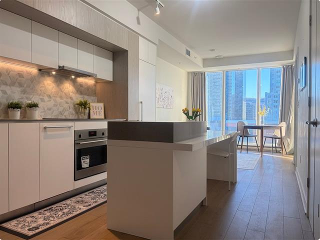 Superbe condo 1 chambre + bureau à la prestigieuse Tour des Canadiennes-2 offrant une magnifique vue sur la ville et occupation immédiate. Aire de vie lumineuse à aire ouverte avec fenêtres pleine hauteur. Bureau idéal pour télétravail ou espace invité. Tous les électroménagers inclus. Emplacement exceptionnel au centre-ville, à deux pas du Centre Bell, métro, REM, Gare Windsor et accès direct à la ville souterraine. Commodités haut de gamme : piscine intérieure, gym, SkyLounge, terrasse avec BBQ, bar à vin et sécurité 24/7. Interdit de fumer, animaux domestiques non admis, acceptation sous réserve d'une vérification de crédit.