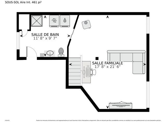 | Salle familiale | 17.8 x 21.6 P | Sous-sol | Bois |