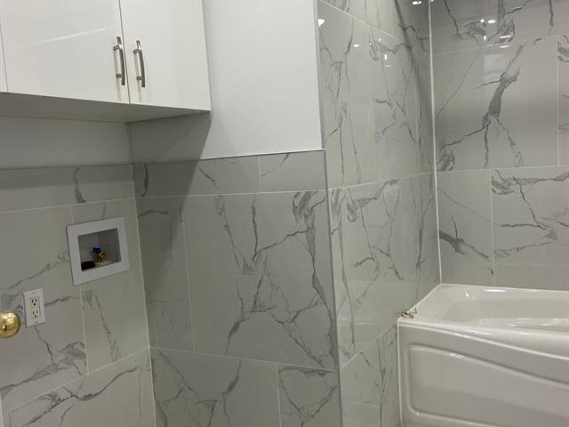 Magnifique appartement rénové au rez-de-chaussée, situé à proximité du parc Lefebvre dans un quartier résidentiel paisible. Il comprend 3 chambres spacieuses, une cuisine et une salle de bain superbement rénovées avec un élégant comptoir en quartz, ainsi que la climatisation centrale. Profitez d'un grand balcon privé avec accès direct à la cour, idéal pour se détendre ou recevoir. Emplacement idéal à proximité des parcs, des écoles, des transports en publique et des commodités locales.