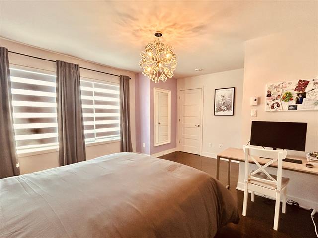 À l'étage, les chambres offrent une atmosphère reposante et la chambre principale est dotée d'un rangement optimisé (walk-in) et d'un éclairage généreux.