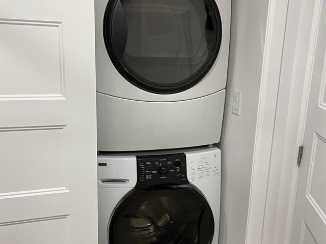 Réfrigérateur, cuisinière, micro-ondes, laveuse, sécheuse.