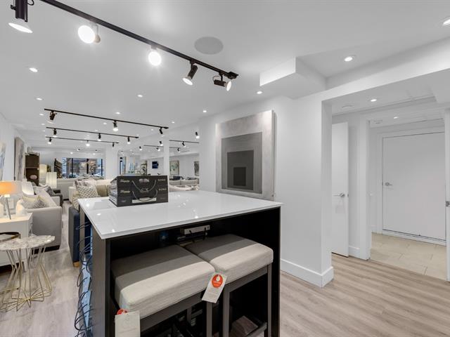L'ESPACE COMMERCIAL (Rez-de-chaussée) Une immense superficie commerciale d'environ 1 900 pi2 offrant une visibilité exceptionnelle et un achalandage quotidien légendaire. Actuellement configuré comme une magnifique salle de montre à aire ouverte, cet espace est un canevas polyvalent prêt pour votre vision -- idéal pour une boutique haut de gamme, un studio de design, un bureau de technologie ou un café.