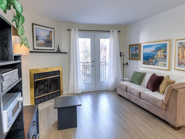 Situé dans le Clos Saint-Lambert, un projet unique avec jardin central aménagé de bancs et de lampadaires, cet appartement au dernier étage offre un espace de vie paisible et central à distance de marche de tout : gare, hôpital, épiceries, commerces, pharmacies, écoles, transport en commun et bien plus. Accès rapide à Montréal par le pont Victoria. L'appartement de deux chambres inclut tous les électroménagers, une place de stationnement extérieur avec prise 120V, un rangement extérieur pour vélos, un espace de rangement au même étage ainsi qu'un foyer au bois. Chats permis. BBQ propane ou électrique permis sur balcon arrière.