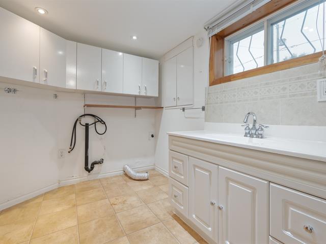 Cour arrière privée et bordée de haies, allée pavée pour 6 voitures, chauffage à air pulsé, fournaise récente et climatisation centrale.