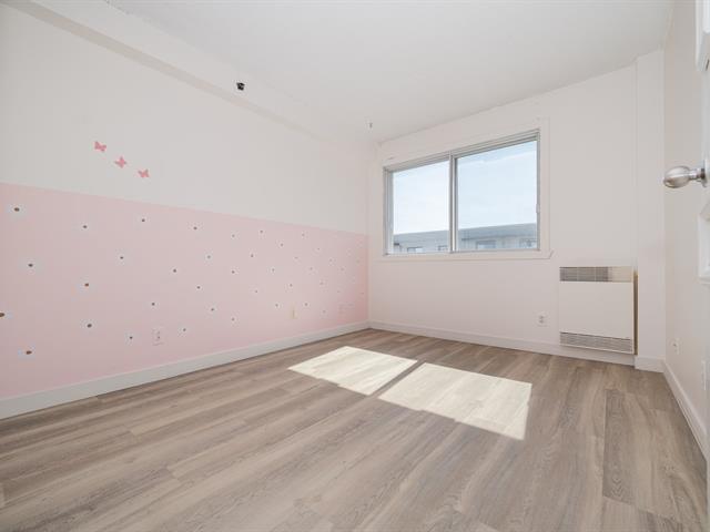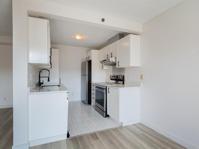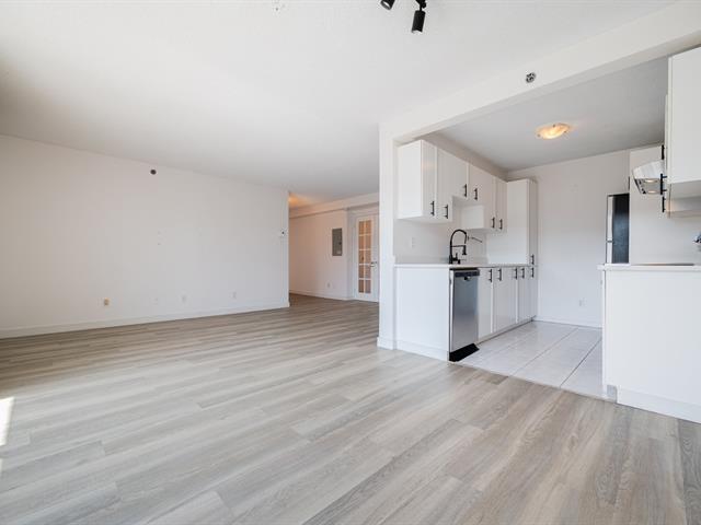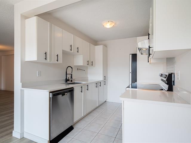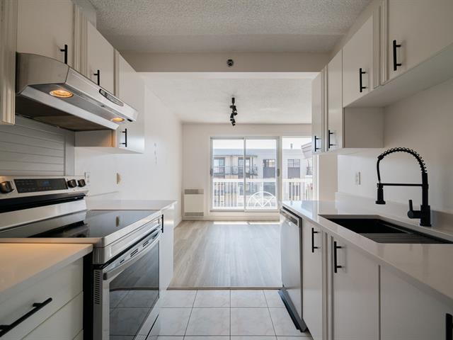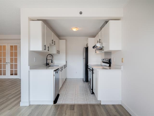 Located on the 10th and top floor, this bright and spacious two-bedroom, one-bathroom apartment offers comfort and abundant natural light throughout the day. The unit includes 1 indoor parking space and a locker for extra storage. Recent updates include new flooring in the living room, hallway, and bedrooms (2022), as well as an updated kitchen in 2023 quartz countertops, a new sink, faucet, and cabinet handles. The open concept living and dining area leads to a generously sized balcony, perfect for relaxing or entertaining. The building offers a small gym and a beautifully maintained garden. Ideally situated, the apartment is just a short walk to Adonis and Collège Bois-de-Boulogne, a short drive away from Marché Central -- including Costco, Amir, Dollarama, Home Depot, Reno Depot, Winners, and more. The location Easy access to public transit and major highways.