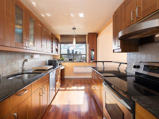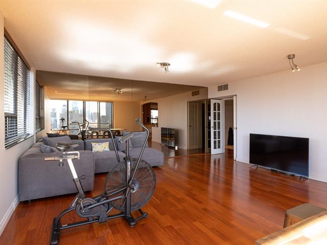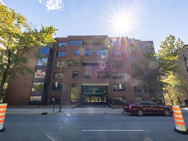 Located in Le Noble, in the heart of Golden Square Mile, this top floor corner condo is over 1,400 sqft and offers a breathtaking unobstructed view of the city. You'll find 2 large bedrooms, 2 full bathrooms, and exceptional luminosity all day. The building boasts 2 main entrances, one giving you direct access to Mount Royal Park and the other bringing you steps away from restaurants, shops, and cultural landmarks such as the Museum of Fine Arts. Pet-friendly building with 24/7 doorman, gym, and indoor pool. Walking distance to metro stations and proximity to McGill and Concordia Universities.