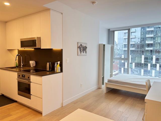 New luxury studio, located in the heart of downtown Montreal with astonishing city view, few minutes walk to metro station Guy-Concordia and Lucien L'Allier, all appliances and furniture included, gym, indoor swimming pool, available right now. No smoking No pet No Airbnb, tenant insurance required, acceptance subject to credit check.