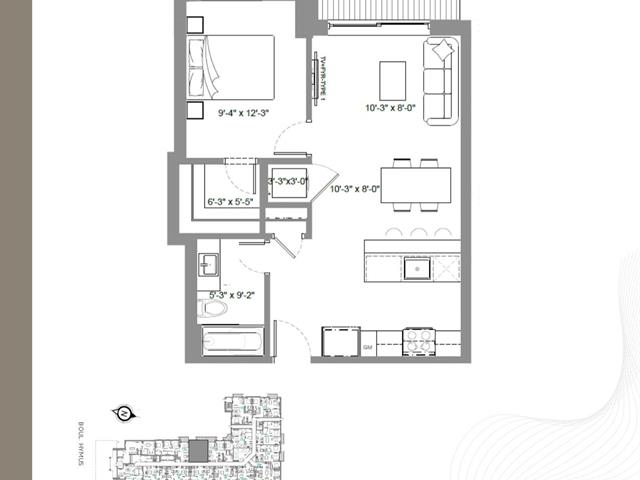 Spacious, luminous 947 sqft offering 2 bedrooms & 2 bathrooms on the 9th floor