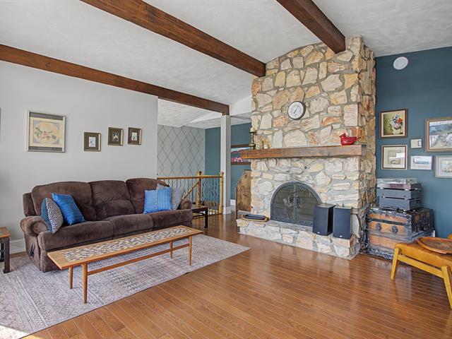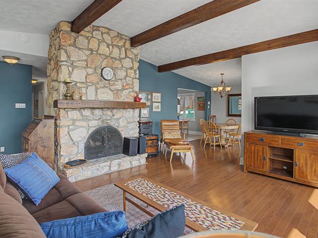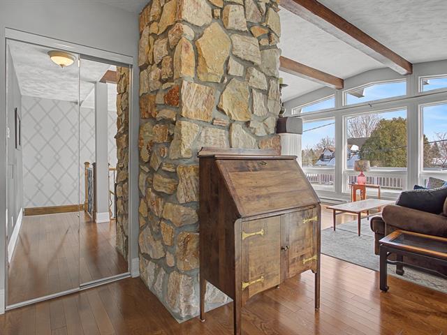 From the moment you enter, the property charms with its warm character and abundant natural light. The living room offers a welcoming atmosphere thanks to a superb stone fireplace that becomes the focal point of the living space. Exposed ceiling beams add character and blend perfectly with the hardwood floors, creating an environment that is both warm and inviting.