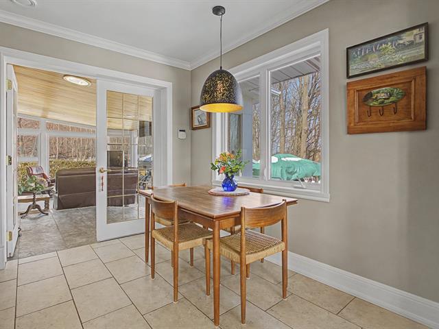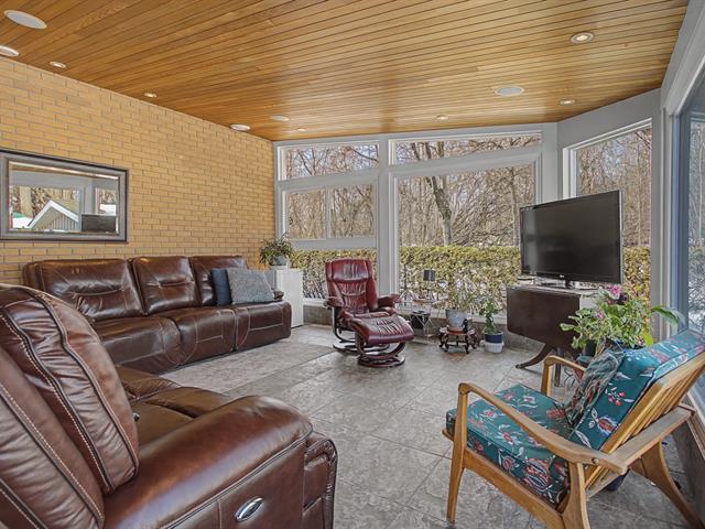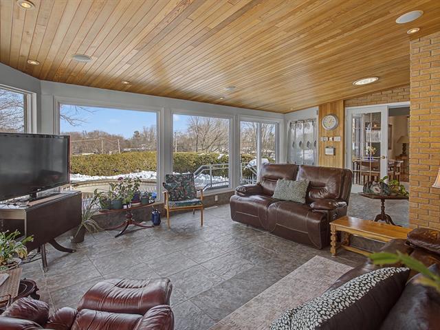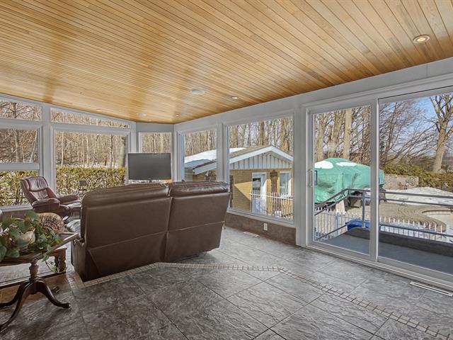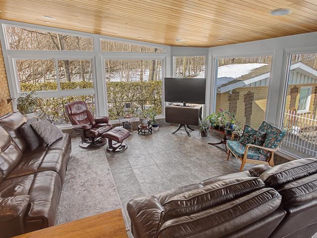 One of the undeniable highlights of the property is the magnificent four-season sunroom. Surrounded by generous windows and featuring a warm wood ceiling, this bright space is perfect for relaxing while enjoying views of the yard and the surrounding nature.