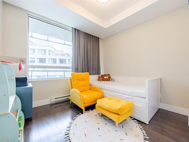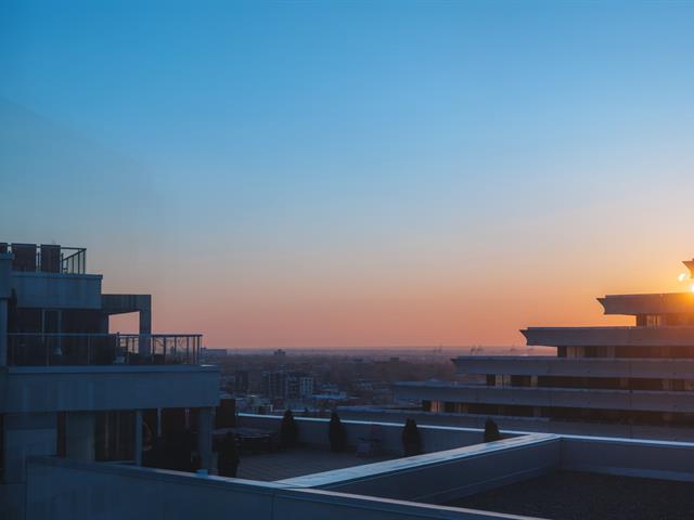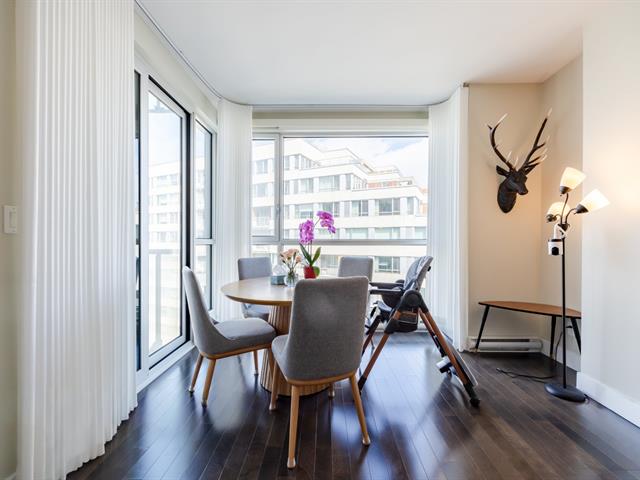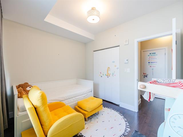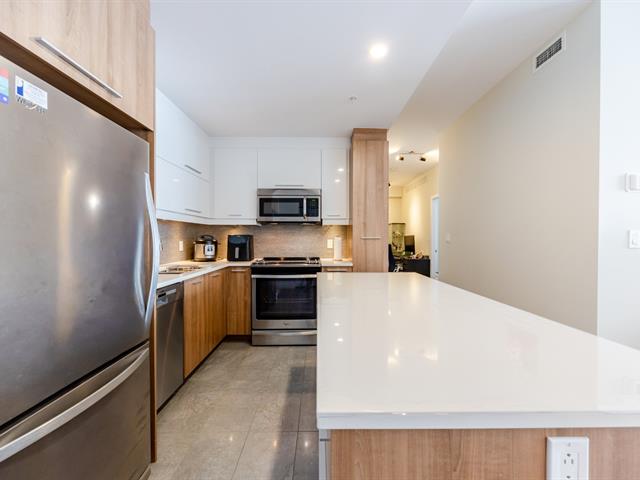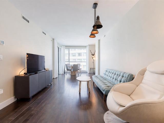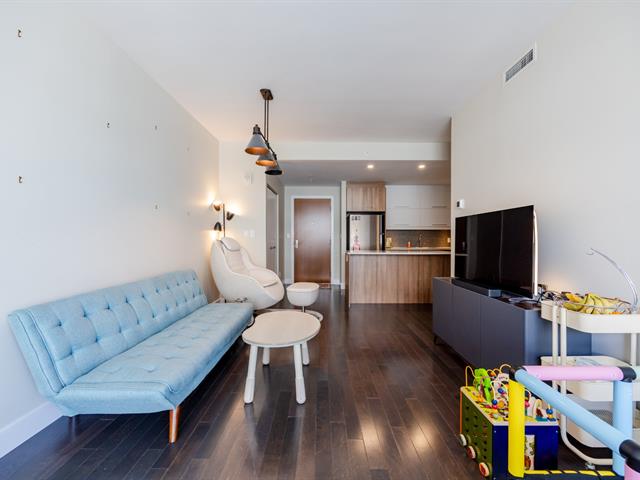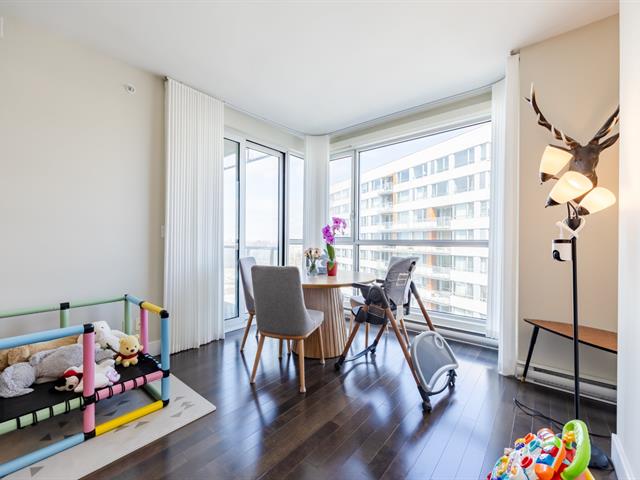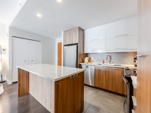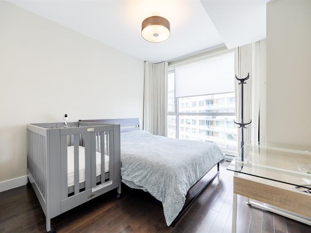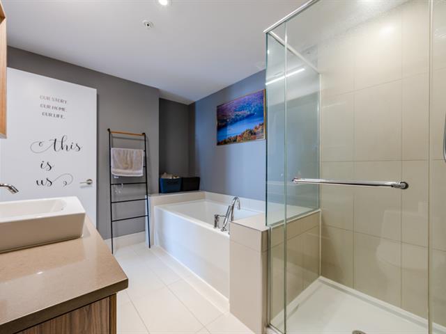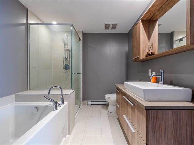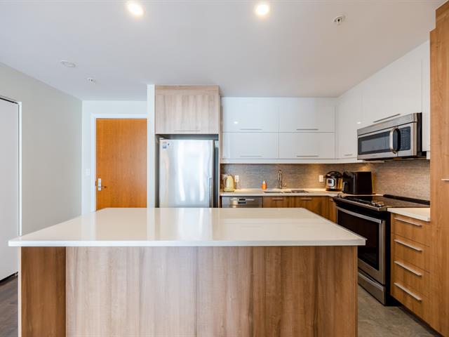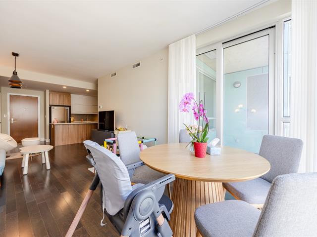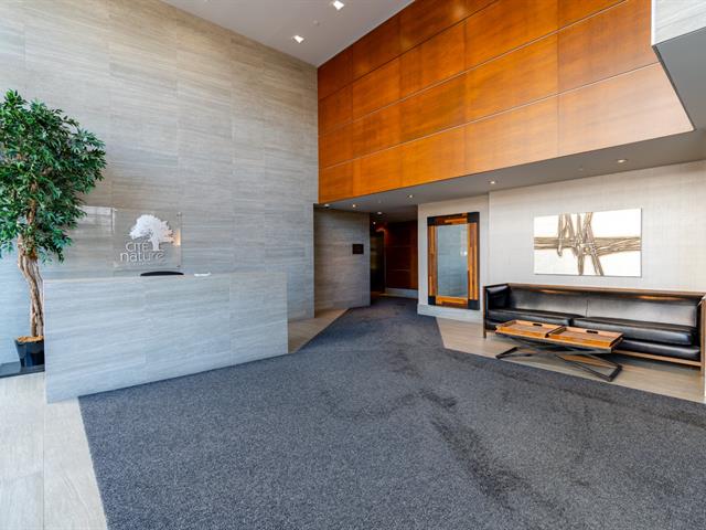 Contemporary 2-bedroom condo in Cité Nature (Phase II), bathed in natural light thanks to its large windows. Features include a kitchen with a quartz breakfast bar, a private balcony, a spacious bathroom with a glass shower, a walk-in closet in the master bedroom, and an office area. Includes underground parking and storage. The building is constructed of concrete with 9-foot ceilings and offers indoor/outdoor pools, a gym, a rooftop terrace, a guest suite, and hot water included. Ideally located near the metro, services, parks, and activities (bike paths, golf, cross-country skiing).