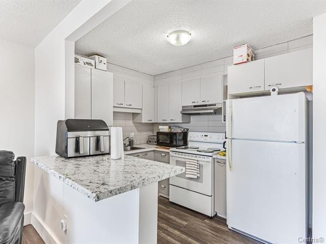 Welcome to Villa du Golf -- Unit 516. Bright condo with unobstructed views of the garden and golf course. Freshly renovated: kitchen, bathroom and flooring. Bright, open living room with beautiful natural light. Additional boudoir space, ideal for a home office, reading nook or extra storage. Condo fees include electricity, heating, hot water and wall-mounted A/C. Building with concierge, heated indoor pool, sauna, fitness center, reception room, and common laundry (fee). 1 indoor garage parking space included.