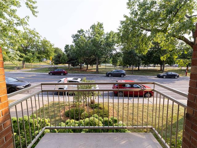 The balcony/terrace faces the front of the building and offers stunning views of the large Étienne-Desmarteau park with mature trees.
