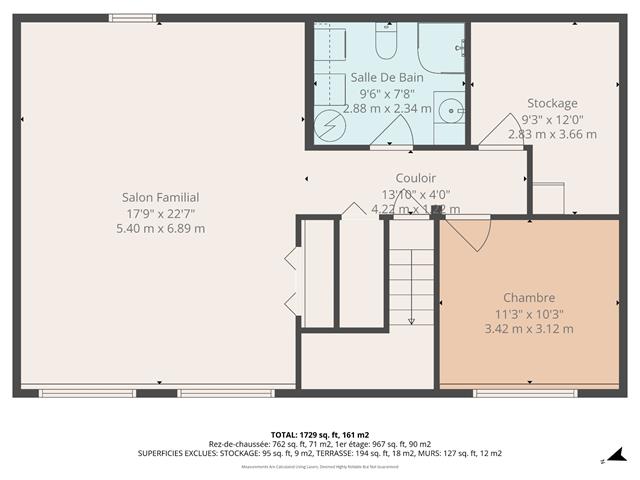 | Family room | 22.7 x 17.9 P | Basement | Floating floor |