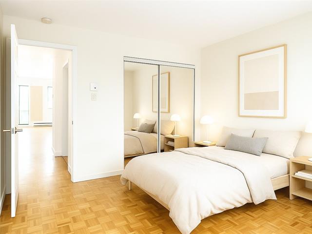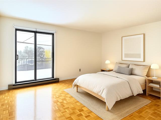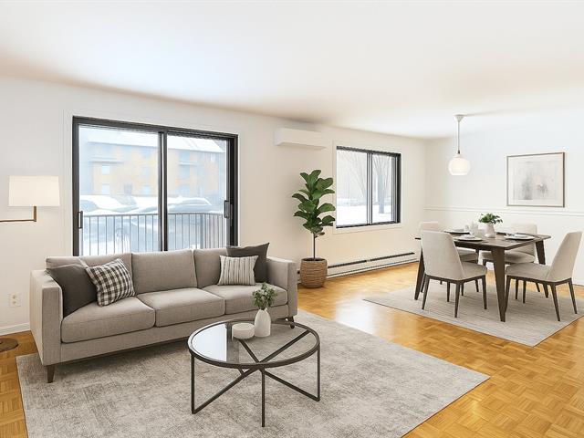 Spacious 2-bedroom condo with parking for rent in Rivière-des-Prairies, on Boul. Perras near Rodolphe-Forget. This 966 sq. ft. unit offers 2 large closed bedrooms, open concept living and dining, a modern kitchen and bathroom, and wall-mounted A/C. Enjoy 2 balconies, including a large private rear terrace. Includes reserved exterior parking, in-unit storage, and a locker in the basement. Freshly painted, move-in ready with new window shades and dishwasher connection.