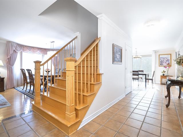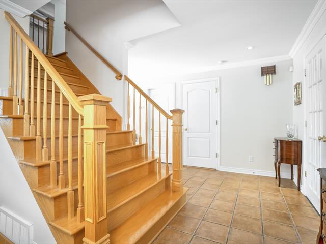Spacious 3133 square feet of living space, Grilli built home: "Mirage" located in sought after area of Pointe-Claire, in proximity to schools, parks, shopping, buses and future REM Station. Closed vestibule with closet and double French door. Large entrance hall with an oak staircase, crown moulding throughout the main level. Living room and dining room are combined, bright bay window and oversize front window, hardwood floors.